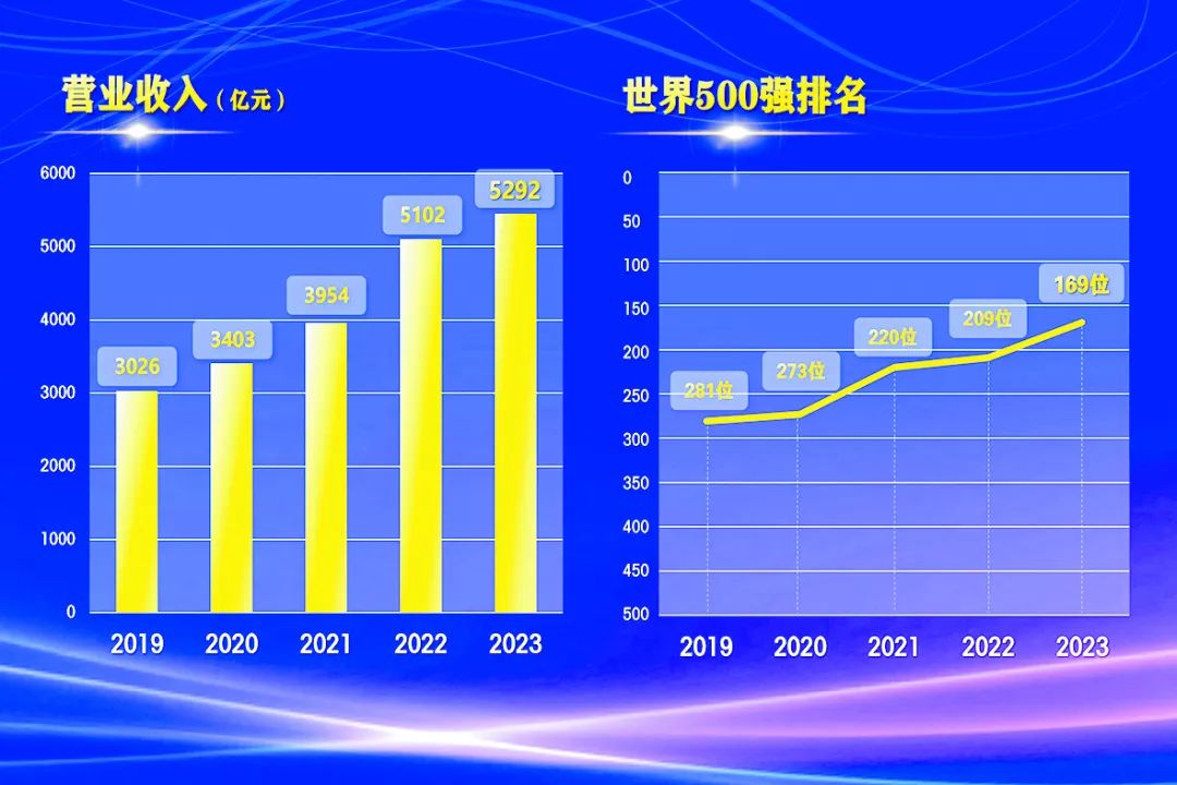 全年實現(xiàn)營收5292億元,增長近200億元,創(chuàng)歷史新高,利潤431億元,完成省國資委全年任務計劃的110%,繼續(xù)領跑全省國資系統(tǒng)。完成煤炭產量2.47億噸,同比增長6%。小保當?shù)V業(yè)450米超長智能綜采工作面年產量突破1300萬噸,刷新全球2—3米中厚煤層單井單面開采紀錄,曹家灘礦業(yè)成為全球單井產能最大的井工煤礦。各類化工產品總量首次突破2000萬噸,同比增長4%。全年發(fā)電544億度,同比增長5.5%。積極組織柔性生產,全年生產粗鋼產量1161萬噸。水泥建材、裝備制造、建筑施工、現(xiàn)代物流等板塊實現(xiàn)了穩(wěn)定發(fā)展。連續(xù)9年入圍世界500強榜單,位列2023年世界500強第169位,展現(xiàn)出良好的成長性。