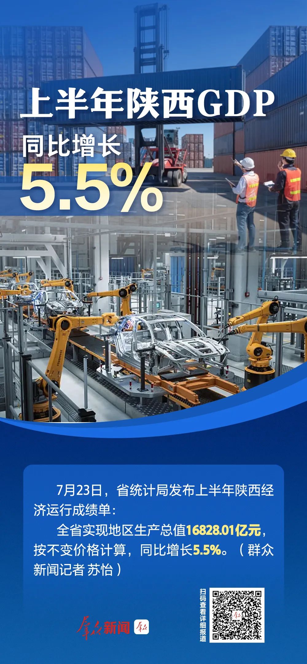 7月23日,省統(tǒng)計(jì)局發(fā)布上半年陜西經(jīng)濟(jì)運(yùn)行成績單:全省實(shí)現(xiàn)地區(qū)生產(chǎn)總值16828.01億元,按不變價(jià)格計(jì)算,同比增長5.5%。