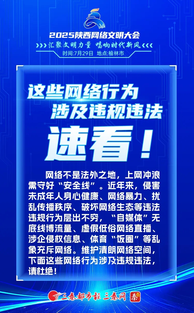 2025陜西網絡文明大會丨這些網絡行為涉及違規(guī)違法,速看!