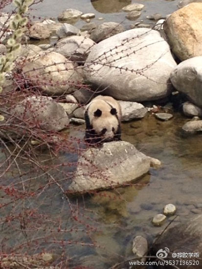 西部網(wǎng)訊(記者 熊惠玲) 今天(3月20日)中午12點(diǎn)左右,在陜西洋縣華陽(yáng)鎮(zhèn)景區(qū),一只野生大熊貓光顧了景區(qū)內(nèi)的鴛鴦河,由于被人群圍觀,這只大熊貓?jiān)诤舆吪腔膊欢ㄩL(zhǎng)達(dá)一個(gè)多小時(shí),目前已經(jīng)被林業(yè)部門放歸山林。