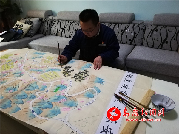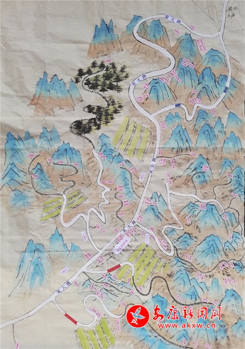 在一張大白紙上,左士霆用鉛筆勾勒出安樂(lè)村的主要地形和道路。夜深人靜時(shí),他又一戶戶標(biāo)記出當(dāng)天走訪的貧困戶住址。駐村以來(lái),他走遍了安樂(lè)村的溝溝壑壑,將村里主要路線、地勢(shì)地形、貧困戶的居住點(diǎn)勾勒連接成片,繪制成“地圖”,整個(gè)村情一目了然。