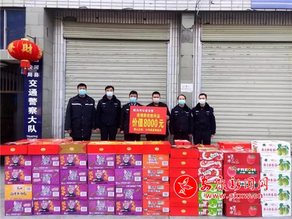 “看到你們公安交警為防控疫情,不畏寒冷,辛苦的工作我非常感動(dòng),作為一名共產(chǎn)黨員、一個(gè)企業(yè)家、一個(gè)公民,我也有義務(wù)盡一份社會(huì)責(zé)任。”2月8日下午,白河縣蠻哥南嶺子大眾超市將價(jià)值8000余元的水果、面包、牛奶等物資送到白河縣公安局交警大隊(duì),用濃濃的真誠(chéng)厚意慰問戰(zhàn)斗在防控一線的公安干警。