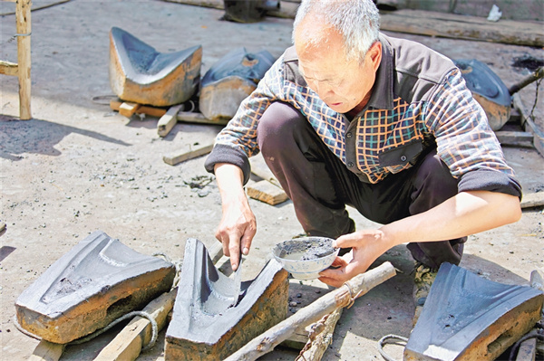 宋祖新的叔祖父是當(dāng)年鏵廠的“掌勺”師傅之一,在一次次觀看大人們操作中,他也學(xué)會(huì)了從制模到熔鐵澆鑄一整套鑄鏵技術(shù)。隨著農(nóng)業(yè)科技的發(fā)展,傳統(tǒng)的鐵鏵制作工藝逐漸被機(jī)械化生產(chǎn)所取代,但在陜南一些山區(qū)坡地仍延續(xù)著犁鏵耕作方式。“前些年,多數(shù)人都選擇外出務(wù)工,種地的少,好多年沒有開爐鑄鏵了,很多年輕人都沒有親自體驗(yàn)過(guò)制作過(guò)程,聽說(shuō)我們這兒又開始鑄鏵,連縣城的人都趕來(lái)看稀奇!”宋祖新說(shuō)。