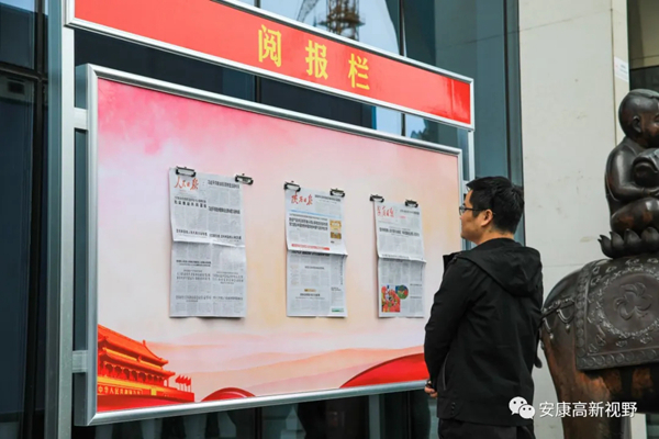 日前,在安康高新區(qū)的市民廣場、政務中心、公園綠地、大眾餐廳、居民社區(qū)等人口密集區(qū)域,承擔著“黨報指引方向,閱讀增添力量”宣傳教育功能的一個個“閱報欄”,讓廣大市民在享受物質生活的同時更具精神追求,成為創(chuàng)建全國文明城市中一道道亮麗的風景。