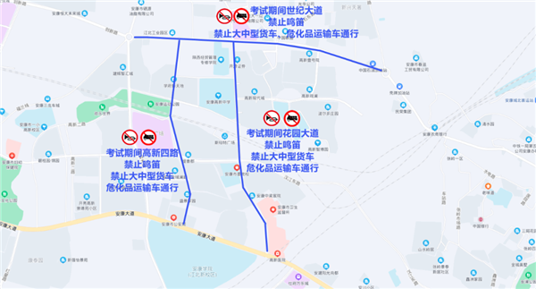2023年普通高校招生考試(以下簡(jiǎn)稱“高考”)將于6月7日至6月8日舉行,為保證廣大考生的交通安全及考點(diǎn)周邊的交通秩序,給考生創(chuàng)造良好的考試環(huán)境,確?荚図樌M(jìn)行。根據(jù)《中華人民共和國(guó)道路交通安全法》及相關(guān)法律法規(guī),安康市公安局高新分局交通管理大隊(duì)決定在考試期間對(duì)高新區(qū)部分道路實(shí)施交通管制措施,現(xiàn)將具體內(nèi)容通告如下: