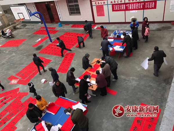 安康新聞網(wǎng)訊(通訊員 劉瀟 楊峰)1月8日,大同鎮(zhèn)陳家營村熱鬧非凡。2017年“萬副春聯(lián)進農(nóng)家”活動在這里舉行,在寒冬臘月里為全鎮(zhèn)人民帶來了濃濃暖意。春聯(lián)書寫臺前人頭攢動,前來免費領(lǐng)取春聯(lián)的群眾絡(luò)繹不絕,書法家們揮毫潑墨,現(xiàn)場群眾紛紛拿起手機拍照留念。一幅幅大紅的春聯(lián),傳遞著新春的吉祥,寄托著對新年的祝福。7as安康新聞網(wǎng)