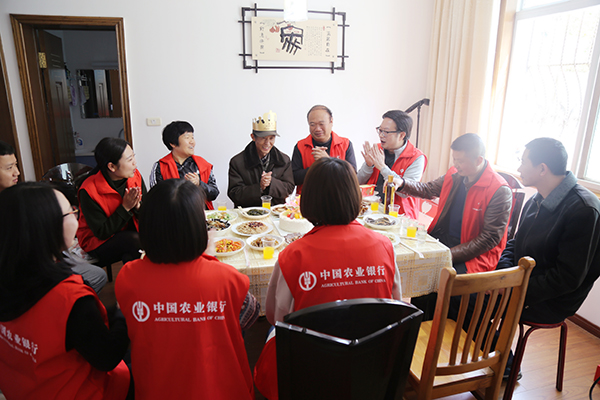 生日當(dāng)天,漢濱農(nóng)行副行長董曉春代表領(lǐng)導(dǎo)班子攜部分青年員工,帶著對(duì)空巢老人的濃濃關(guān)愛和厚重的生日禮物,來到我的住室,陪我度過了一個(gè)頗具特殊社會(huì)意義的生日。幾位領(lǐng)導(dǎo)同我聊天,向我噓寒問暖。青年人給我洗衣拖地,替我做飯。一時(shí)間,住室里如春風(fēng)柔沐,暖日曛曛,彌揚(yáng)著濃濃的溫暖和愛意,給一個(gè)老人心里注入了非比一般的欣慰,驅(qū)盡了獨(dú)居生活的寂寞。他們的愛心給我送來一次最為幸福的生命享受。