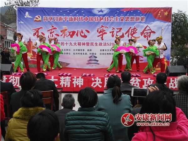 安康新聞網(wǎng)訊(通訊員 潘德安)為進一步學習貫徹宣傳黨的十九大精神,把思想和行動盡快統(tǒng)一到大會精神上來,以習近平新時代中國特色社會主義思想武裝頭腦,高標準、嚴要求、強責任、實舉措決勝脫貧攻堅戰(zhàn),11月16日,大河鎮(zhèn)文化站邀請安康漢韻知青藝術團為大河鎮(zhèn)伍河村開展“學習貫徹黨的十九大精神,決勝脫貧攻堅戰(zhàn)”主題文藝演出活動。