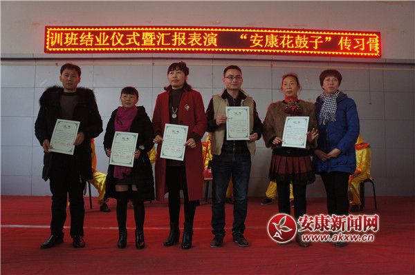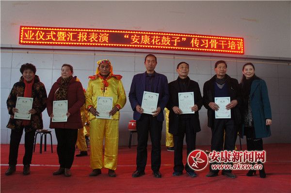 安康新聞網(wǎng)訊(通訊員 惠星 年靜) 12月2日,由安康市非遺保護中心、漢濱區(qū)文化館、區(qū)非遺保護中心共同舉辦的“把根留住•我眼中的非遺——安康花鼓子傳習(xí)骨干培訓(xùn)班結(jié)業(yè)儀式暨匯報表演”在安康市漢濱區(qū)文化館隆重舉行,首期參加培訓(xùn)的40名學(xué)員現(xiàn)場展示學(xué)習(xí)成果,并獲得結(jié)業(yè)證書。