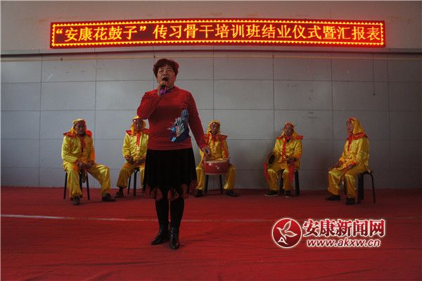 本次培訓(xùn)的學(xué)員中,既有民間花鼓子愛好者,又有學(xué)校教師和鄉(xiāng)鎮(zhèn)文化站干部,通過一個多月的學(xué)習(xí),他們不但提升了自己到花鼓子表演唱水平,也通過文化館搭建的這一平臺,互相交流,增進了對花鼓子這一門傳統(tǒng)民間藝術(shù)的深入了解。在結(jié)業(yè)儀式上,學(xué)員們不僅表演了傳統(tǒng)安康花鼓子《月亮一出萬丈高》、《叫我唱歌也不難》,還結(jié)合十九大的召開新編創(chuàng)了《贊十九大》、《政策暖人心》、《頌安康》等一批宣傳十九大精神的花鼓詞,為傳統(tǒng)的表演藝術(shù)賦予了新的時代內(nèi)涵,讓傳統(tǒng)民間藝術(shù)煥發(fā)出了新的生命力。