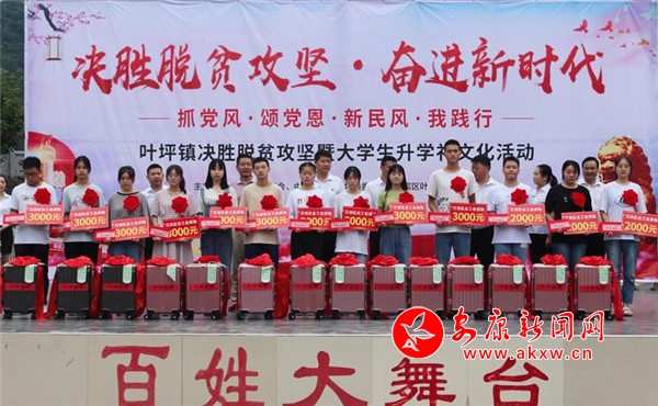 據(jù)了解,2019年,全鎮(zhèn)有15名同學,通過努力拼搏,考入理想大學。漢濱區(qū)總工會為準大學生們現(xiàn)場發(fā)放助學金42000元,該鎮(zhèn)黨委政府贈皮箱15個。“希望你們以困苦磨練意志,化感激之情為奮發(fā)之源,刻苦學習,早日成才,為建設祖國,改變家鄉(xiāng)面貌奉獻力量”,這是葉坪鎮(zhèn)黨委政府對他們寄語的厚望。