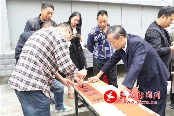 喬遷新居貼對聯(lián),是安康的習(xí)俗。“紅日高照新居戶,喜花常開幸福家”漢濱區(qū)文聯(lián)邀請5名我市知名書法家現(xiàn)場為搬遷的貧困戶書寫對聯(lián)。該鎮(zhèn)還為喬遷新居的易地搬遷對象送上了精心準備的禮品。