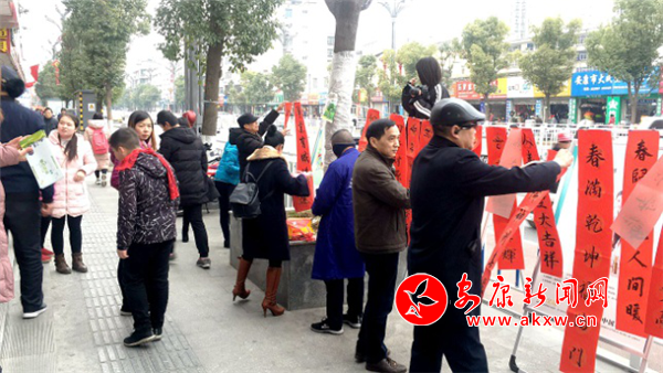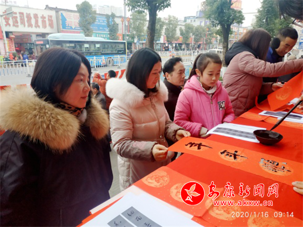 本網(wǎng)訊(通訊員 王艷 劉長(zhǎng)青 趙小順)“迎新春、貼春聯(lián)”是中華民族的傳統(tǒng)文化,突顯了年味民味,一副副精美的春聯(lián),蘊(yùn)含著辭舊迎新的美好祝福。2020年1月16日,漢濱區(qū)文化旅游廣電局、漢濱區(qū)文化館、新城街道辦分館在巴山中路舉辦“百村百名書法作者”義寫和2020年“文化小康行動(dòng)——萬副春聯(lián)進(jìn)農(nóng)家”活動(dòng)。