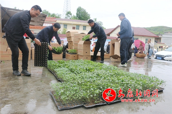 “ 朱世民4板尖椒、4板線椒、4板西紅柿…… ”上午十點(diǎn),“扶貧四支力量”成員分工協(xié)助,搬運(yùn)、登記、發(fā)放蔬菜苗,忙得不亦樂(lè)乎。領(lǐng)到蔬菜苗的農(nóng)戶(hù)們,個(gè)個(gè)喜笑顏開(kāi)。