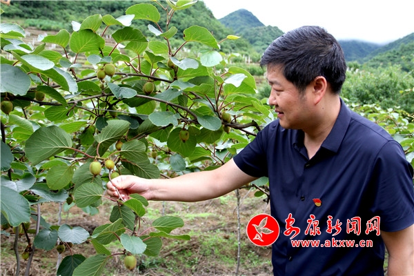 白云飛在查看村里獼猴桃長勢情況