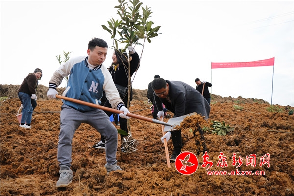 在植樹現(xiàn)場,大伙兒分工協(xié)作,揮鍬鏟土、填入樹坑、夯土壓實、提桶澆水,一派熱火朝天的勞動景象。經(jīng)過兩個小時的悉心栽植,52株枇杷樹苗迎風(fēng)挺立在黃土坡上,待到枝繁葉茂時,必將結(jié)下累累果實。Yh7安康新聞網(wǎng)