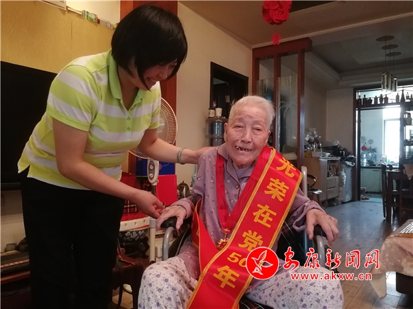 本網(wǎng)訊(通訊員 熊彬彬 劉晉安)在中國共產(chǎn)黨成立100周年之際,6月28號上午,漢濱區(qū)委、組織部、老城街道黨工委、培新街社區(qū)黨委組成慰問團(tuán)前往城區(qū)一小區(qū),看望慰問建國前入黨、有73年黨齡的老黨員宋玉琴同志,并送去了“光榮在黨50年”紀(jì)念章和中央及上級黨組織的慰問金。宋玉琴同志接過慰問金,激動地說:“黨和各級組織,都沒有忘記我這個老黨員,非常感謝!”