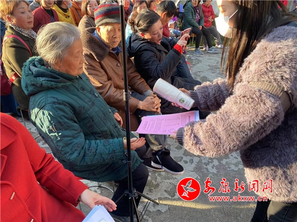 文藝演出間隙,村(社區(qū))干部積極向現(xiàn)場觀眾普及“九率一度”、平安建設、 “321”基層治理模式、文明城市創(chuàng)建和反電信網(wǎng)絡詐騙等知識,并發(fā)放宣傳彩頁。