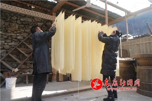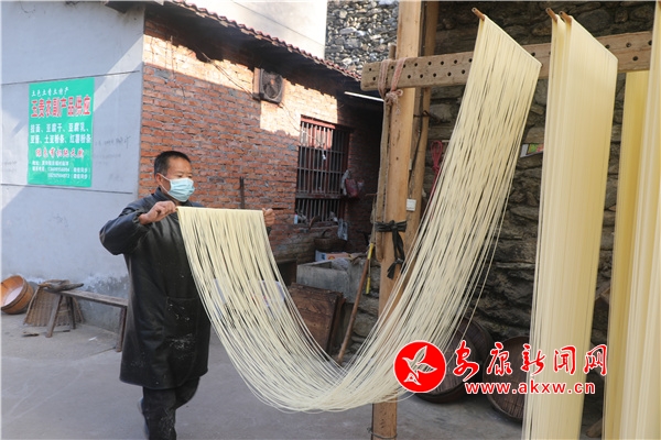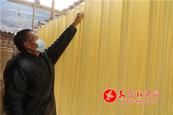 臨近春節(jié),家住漢濱區(qū)茨溝鎮(zhèn)東鎮(zhèn)社區(qū)6組村民任玉貴一家因手工鹽掛面的需求量增多,正加緊生產(chǎn)鹽掛面,和面、醒面、盤條、醒面、扯面、晾曬......今年62歲的任玉貴,已有42年的做面經(jīng)驗。從19歲開始,他跟著本村老手藝人王師傅學(xué)習(xí)手工鹽掛面制作,他制作的掛面瓤而筋,口感好,易消化,能增進食欲,舒暢開胃,老少皆宜。他加工的鹽掛面不僅銷往城區(qū)周邊,而且遠銷西安、深圳、廣東等地。靠著自己勤勞的雙手,家里三間兩層的小樓蓋起來了,日子過的有聲有色。目前該手工技藝正在相關(guān)部門的幫扶下正在申請非遺文化傳承人項目。(鄭時根 攝)