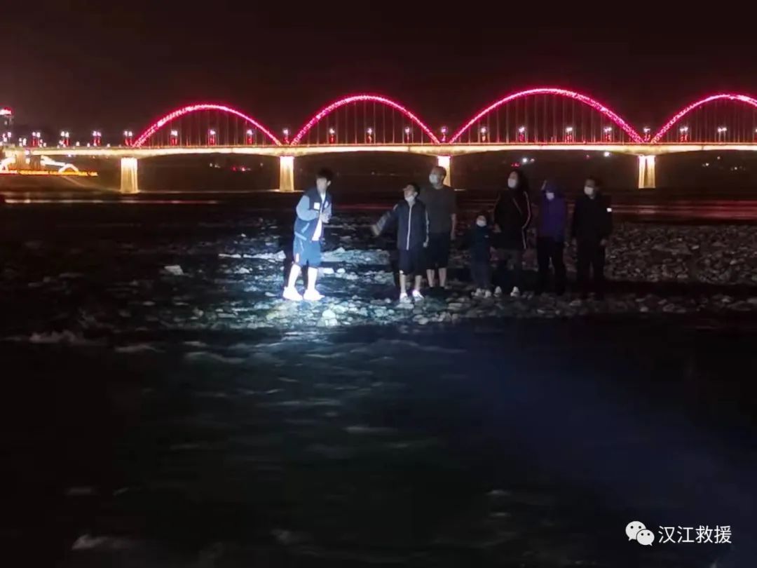 經(jīng)調(diào)查了解,有六個大人和一個小孩共計7名西安游客可能由于下午天氣晴好蹚水到安康大劇院位置漢江河中沙洲上耍的流連忘返,夜幕降臨,適逢上游安康水電廠電站放水太快,河水隨之上漲的也太快,被困漢江中央沙洲無法返岸。事發(fā)地水域地形復雜、水流湍急、風浪較大、旋渦較多、水溫冰冷,加上天色已暗,救援難度較大,情況十分危險,漢濱消防大隊接警后已先期到達該水域岸邊,漢江志愿者救生隊隨之趕至河中位置,經(jīng)雙方會商,確定救援方案,由漢江志愿者救生隊策應(yīng)配合,由漢濱消防大隊擔任主攻,使用動力橡皮艇強渡沖鋒到達沙洲展開營救,期間動力橡皮艇受損漏氣,經(jīng)緊急修復后分兩次將六人和一個小孩成功救援安全靠岸,整個救援行動持續(xù)近1個半小時左右,漢濱區(qū)漢江志愿者救生隊(漢濱區(qū)水上應(yīng)急救援隊)共計出動隊員7名,動力橡皮艇一艘,順利完成了出險救援任務(wù)。