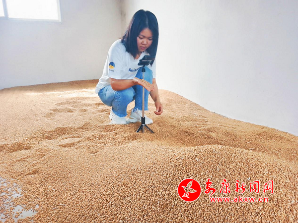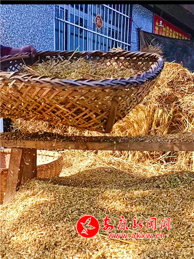 6月6日,驕陽似火。漢濱區(qū)赤衛(wèi)村周全洪一家忙得不亦樂乎,他戴著草帽和口罩,將麥穗一把一把喂進脫粒機,幫忙的鄰居們或抱捆持簸或木叉飛揚,妻子不停地晃動手中竹篩,金燦燦的麥粒散落成堆,女兒夢蝶一邊端茶水遞毛巾,一邊用手機直播:“這是陜南農村傳統的打麥子方式。”“形象很酷,動作很帥……是不是?”“要吃富硒新麥子,可以呀!”益農的“新農具”,帶貨又漲粉。