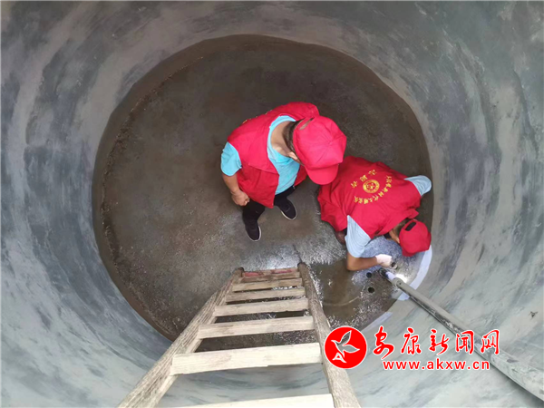 石門村志愿服務(wù)隊(duì)對(duì)人居飲水工程進(jìn)行全面排查、定期清洗水窖。該村志愿服務(wù)分隊(duì)長惠才波說,“村里留下來的大部分人都是老弱病殘弱勢(shì)人群,近期持續(xù)高溫,防汛抗旱形勢(shì)嚴(yán)峻,優(yōu)先保障群眾飲水安全,解決群眾急難愁盼問題,是我們工作職責(zé)所在,通過我們的行動(dòng),讓群眾感受到更多的幸福感,引導(dǎo)群眾參與到文明新風(fēng)創(chuàng)建中來,讓石門村更美好”。