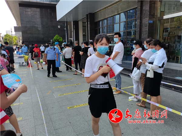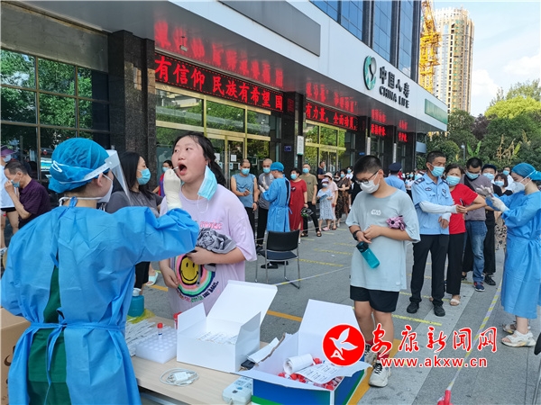 按照全市新冠肺炎疫情防控指揮部的周密部署,8月18日下午,漢濱中心城區(qū)啟動第二次全員核酸檢測工作 。圖為安火路社區(qū)居民在執(zhí)勤民警、醫(yī)務(wù)人員、社區(qū)工作者和志愿者的密切配合下,有序開展核酸檢測。(陳榮斌 攝) 4ga安康新聞網(wǎng)