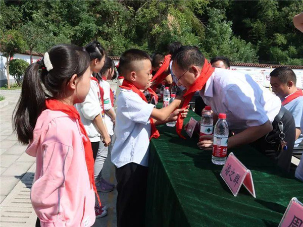 捐贈儀式上,少先隊員向各位嘉賓敬獻紅領(lǐng)巾。校長馮波向愛心企業(yè)、愛心人士對教育事業(yè)的大力支持表示衷心的感謝。