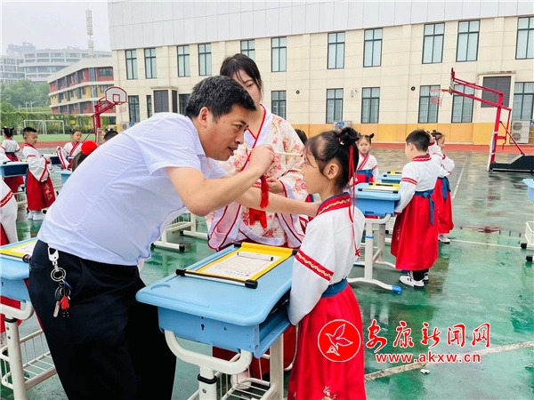 9月16日,安康職業(yè)技術(shù)學(xué)院附屬小學(xué)舉行“喜迎二十大 強(qiáng)國復(fù)興有我”開筆啟智活動(dòng)。一年級(jí)新生身著漢服,通過正衣冠、拜孔子、誦經(jīng)典、點(diǎn)朱啟智、擊鼓鳴志、開筆寫“人”、感恩鞠躬等環(huán)節(jié),領(lǐng)略濃郁的校園文化氛圍和優(yōu)秀傳統(tǒng)文化的魅力,莊重的儀式在學(xué)生內(nèi)心種下愛學(xué)習(xí)、敬師長的種子,助力孩子走好學(xué)習(xí)第一步。(圖文/甘立)