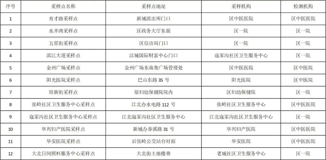點位設置:在中心城區(qū)設置固定核酸采樣點12個