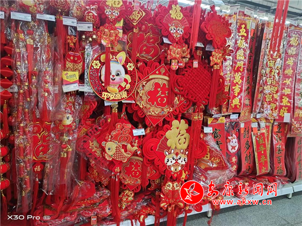 年貨市場一片火熱,瓜果、蔬菜、肉類、年畫應有盡有,處處洋溢著節(jié)日的喜慶,呈現(xiàn)出購銷兩旺的紅火景象。超市、店鋪年貨琳瑯滿目,商家用各種的優(yōu)惠招攬顧客。