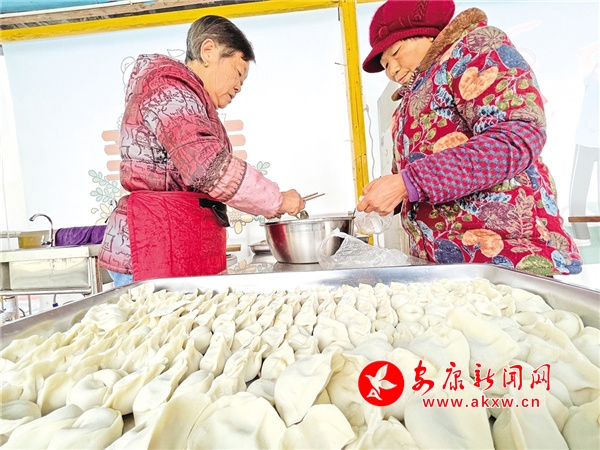 的確,食堂里餃子的熱氣、老人們交流的笑語熱烈地交織在一起,從屋里溢出,填滿了寧靜的文化村。