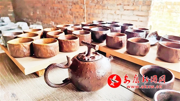 走進(jìn)漢濱區(qū)石梯鎮(zhèn)葉溝村漢水陶藝工作室,琳瑯滿目的茶器、碗具、泥塑等大大小小的陶藝作品,都出自來(lái)顯軍之手。38歲的來(lái)顯軍看似有些內(nèi)斂,卻很有內(nèi)涵,他說(shuō),生活在農(nóng)村,從小就喜歡玩泥巴,跟隨爺爺學(xué)習(xí)泥塑,用泥巴捏各種各樣的東西。就這樣,泥巴在他手里玩活了。