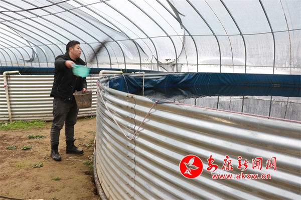 眼下已是深冬時節(jié),戶外天寒地凍、萬物沉寂,然而漢濱區(qū)雙龍鎮(zhèn)雙龍社區(qū)東糧和諧養(yǎng)殖農(nóng)民專業(yè)合作社卻是一派繁忙景象。生態(tài)養(yǎng)魚大棚里,一個個魚池整齊排列,幾名工作人員正手拿工具和飼料,在各個魚池間來回忙碌。雙龍社區(qū)是漢濱區(qū)雙龍鎮(zhèn)集鎮(zhèn)所在地,東與漢濱區(qū)晏壩鎮(zhèn)相鄰,南與平利縣三陽鎮(zhèn)接壤。長期以來,雙龍社區(qū)以茶葉種植、生豬養(yǎng)殖為主導(dǎo)產(chǎn)業(yè),但主要經(jīng)濟收入仍以勞務(wù)輸出為主,缺乏可持續(xù)、投資小、見效快和效益高的拳頭項目。