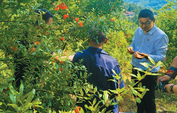 安康市漢濱區(qū)瀛湖鎮(zhèn)東坡村占地?cái)?shù)百畝的石榴園里,碩果盈枝,綠里透紅。眼下正是石榴果發(fā)育膨大的關(guān)鍵期,抗旱保灌尤為重要。漢濱區(qū)相關(guān)部門領(lǐng)導(dǎo)干部現(xiàn)場(chǎng)調(diào)研,提……