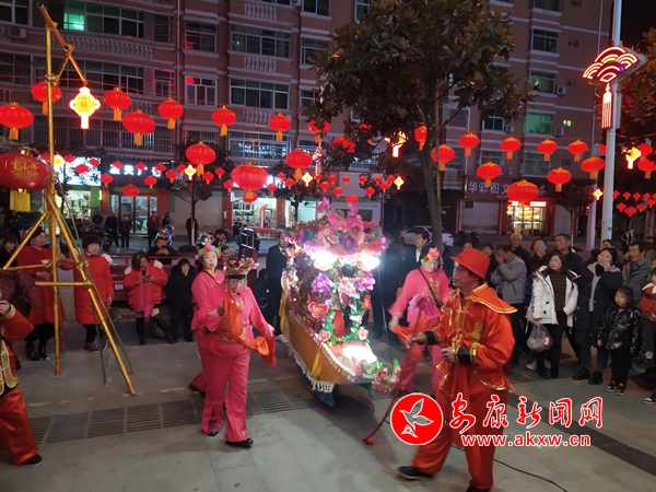 平梁鎮(zhèn)沐浴河村的采蓮船來到了縣城進行賀新春歡度元宵節(jié)慰問演出活動。彩船花枝招展,鮮亮耀眼。彩船旁邊的4位婀娜多姿的伴舞者,邁著輕盈的秧歌舞步,舞動腰間的彩綢帶,為群眾送上優(yōu)美、中聽、吉祥的話語,送去新春的恭賀祝福和濃郁的鄉(xiāng)情與熱情,深受干部居民群眾的歡迎。