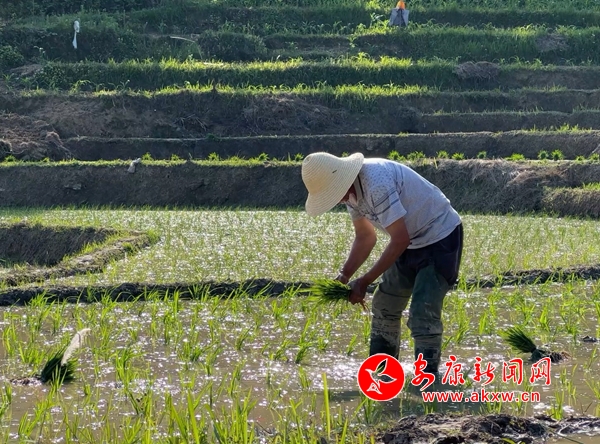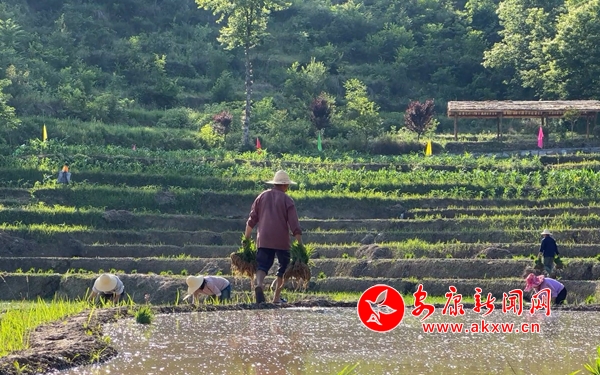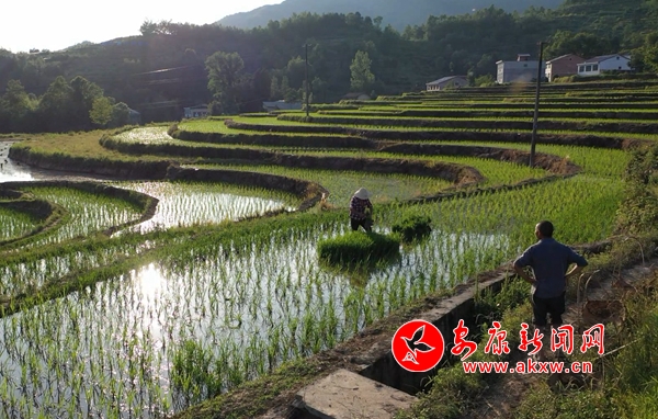 放眼望去,層層梯田披上了一襲綠色的新裝,微風吹過,秧苗輕輕搖擺,蕩漾起無限生機。在持續(xù)兩周的插秧期,村民們每天從早上六點一直忙到下午七點鐘才收工,“手把青秧插滿田”的農忙景象與大大小小形狀各異的水田,構成一幅詩意盎然的田園風光圖。