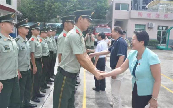 “致力于加快經(jīng)濟社會事業(yè)發(fā)展的同時,每年‘春節(jié)’和‘八一’期間,劉飛霞等縣四大班子主要領(lǐng)導都會到駐漢部隊進行走訪慰問,看望部隊官兵。近年來,累計開展走訪慰問3萬余人次,為部隊和退役官兵送去各類慰問品80萬元。”縣委常委,縣人武部部長吳杰說,“針對駐軍戰(zhàn)備訓練和生活中的實際困難,劉飛霞還召開專題議軍會議,為部隊官兵免費安裝更換空調(diào)、熱水器、晾衣房等,定期為隨軍家屬每月發(fā)放生活補助,解決隨軍家屬子女入學等問題,切實解除了駐軍官兵的后顧之憂,有效增強了軍人的榮譽感和使命感。”