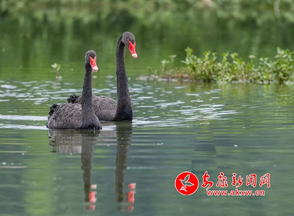 本網訊(通訊員 黃智發(fā) 賀珍珍)6月20日,漢陰縣雙乳鎮(zhèn)千畝荷塘迎來“稀客”——三只黑天鵝。優(yōu)雅的黑天鵝、碧綠的荷葉、粉紅的荷花組成了一幅美麗的畫面,吸引了很多人前來觀看、拍照。
