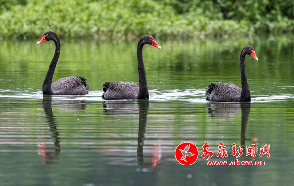 “今天準備過來拍荷花,結果來了后發(fā)現(xiàn)這里有三只黑天鵝,兩大一小,像是一家人,黑天鵝是非常稀有的鳥類,拍出來的照片非常漂亮,在千畝荷塘還是第一次發(fā)現(xiàn),近兩年,很多珍稀鳥類都陸陸續(xù)續(xù)來到這里,其中有朱鹮、大白鷺等鳥類,說明千畝荷塘這里的生態(tài)環(huán)境是非常好的。”攝影愛好者謝小利說。