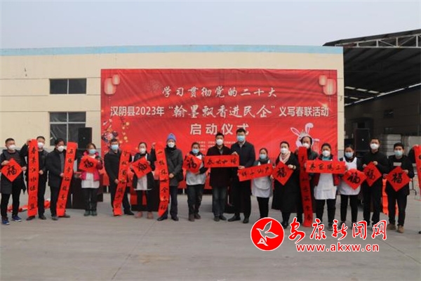 本網(wǎng)訊(通訊員 唐成明)寅虎辭歲萬象新,卯兔迎福報春來。為認真學(xué)習(xí)貫徹落實黨的二十大精神,進一步弘揚傳承中華民族的優(yōu)秀傳統(tǒng)文化,大力營造全縣上下關(guān)心支持民營經(jīng)濟發(fā)展的濃厚氛圍。1月12日上午,漢陰縣工商聯(lián)聯(lián)合縣文聯(lián)舉行“翰墨飄香進民企”義寫春聯(lián)活動啟動儀式。