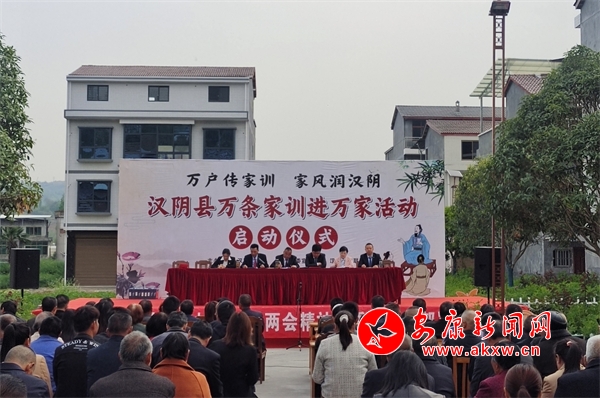 本網(wǎng)訊(通訊員 張輝)為傳承弘揚(yáng)傳統(tǒng)優(yōu)良家風(fēng),宣揚(yáng)文明向上的家風(fēng)文化,4月11日,漢陰縣以“萬(wàn)戶傳家訓(xùn)、家風(fēng)潤(rùn)漢陰”為主題,在城關(guān)鎮(zhèn)五一村舉辦了“萬(wàn)條家訓(xùn)進(jìn)萬(wàn)家”活動(dòng)啟動(dòng)儀式,推進(jìn)家庭教育和家庭美德建設(shè),營(yíng)造良好的家庭環(huán)境和社會(huì)環(huán)境。