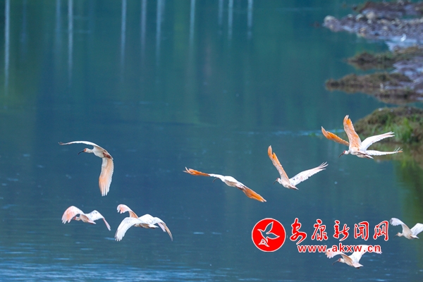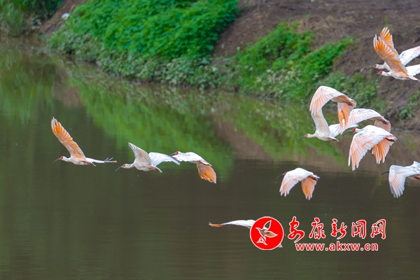 2010年,漢陰縣首次在澗池鎮(zhèn)洞河河畔發(fā)現(xiàn)朱鹮,2013年,朱鹮在漢陰縣雙河口鎮(zhèn)鳳柳村清泥河畔首次繁衍成功。隨著近年來漢陰縣生態(tài)環(huán)境的持續(xù)改善,先后在觀音河鎮(zhèn)、澗池鎮(zhèn)、蒲溪鎮(zhèn)、鐵佛寺鎮(zhèn)、城關鎮(zhèn)、雙乳鎮(zhèn)等多地發(fā)現(xiàn)朱鹮的倩影,截至目前,已在漢陰共發(fā)現(xiàn)朱鹮110余只。