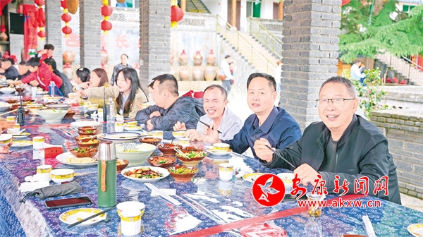“我現(xiàn)在是在雙河口古鎮(zhèn)的長桌宴現(xiàn)場,在我身后的長桌上已經(jīng)擺滿了酸辣茴香小魚、漢陰豆腐干等10余種特色菜肴,游客們圍桌而坐、品嘗美食、好不熱鬧。”5月2日,在雙河口古鎮(zhèn)“五一”旅游季期間,漢陰縣融媒體中心記者介紹著長桌宴現(xiàn)場盛況。