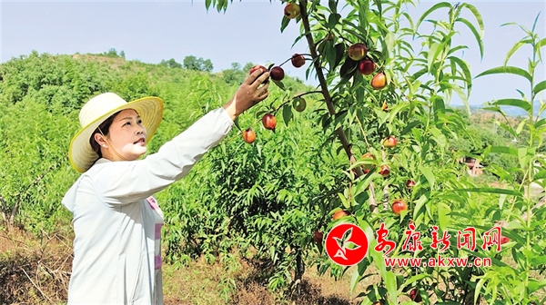 走進(jìn)蔣家溝,大片桃林綠意盎然,一個個鮮紅飽滿的油桃和紅桃掛滿枝頭,濃郁的果香撲鼻而來,“桃”醉人心。果農(nóng)們提著籃子穿梭其間忙著采摘,豐收的喜悅溢于言表。“今年的桃子產(chǎn)量比去年高,品種多、品質(zhì)也有保障,剛上市就收了三個大訂單,大家得抓緊把貨備齊……”前進(jìn)村產(chǎn)業(yè)發(fā)展負(fù)責(zé)人楊啟軍一邊分揀果子,一邊和入園務(wù)工的群眾交流。