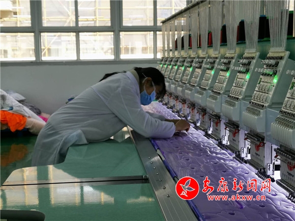 本網(wǎng)訊(通訊員 黃云慧)“我就住在這個社區(qū),在這里上班每月能拿2000多,我很滿足了”,五里鎮(zhèn)泰炫電腦繡花公司女工李榮雪一邊說著一邊手上不停地清點著貨物數(shù)量。李榮雪是五里鎮(zhèn)朝陽社區(qū)二組村民,今年50歲了,兩個孩子都在上學,經(jīng)鄰居介紹到工廠里務工,實現(xiàn)掙錢和持家兩不誤。