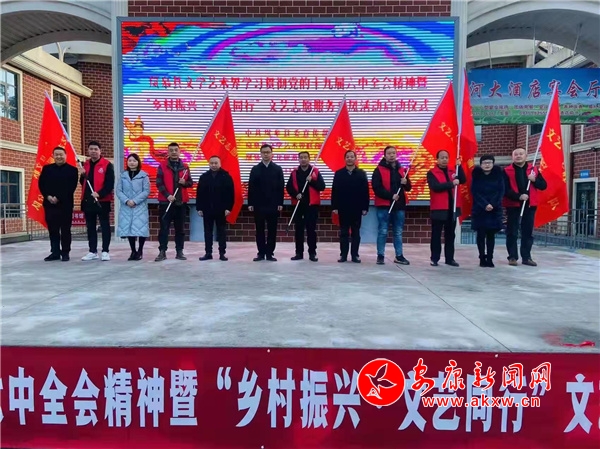 縣委宣傳部、縣文聯(lián)、新時(shí)代文明實(shí)踐中心、鄉(xiāng)村振興局、文廣旅游局負(fù)責(zé)人參加啟動儀式并為縣文聯(lián)文藝志愿服務(wù)小分隊(duì)授旗。來自書畫協(xié)會、作家協(xié)會、攝影家協(xié)會、音樂家協(xié)會及美術(shù)志愿服務(wù)者共40余人參加活動。