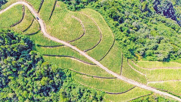 無奈,黃德培雇來了一臺挖掘機將通往坡上的道路平整拓寬,并在路邊臨近坡下一側(cè)用竹竿搭起護欄,每天清晨趕著牛群在“專線”上鍛煉。一段時間過后,這群牛逐漸熟悉了路線,膽量也慢慢大了起來,有時還能和本地的黃牛一樣,撒歡在路上小跑一段,然后直接上坡覓食吃草。