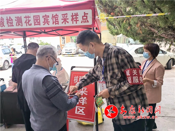 為確保中心城區(qū)群眾應(yīng)檢盡檢,城關(guān)鎮(zhèn)新時代文明實踐活動以協(xié)助全員核酸檢測為主要內(nèi)容蓬勃開展。城南社區(qū)新時代文明實踐站志愿者、醫(yī)護人員組成“上門服務(wù)”采樣隊為武警中隊執(zhí)勤戰(zhàn)士、高齡老人開展上門采樣服務(wù),志愿服務(wù)“一抹紅”成為此次新一輪中心城區(qū)全員核酸檢測工作一道亮麗的風(fēng)景線。