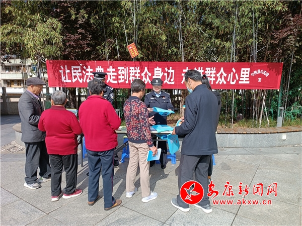 在縣政府廣場活動(dòng)現(xiàn)場,通過懸掛橫幅、發(fā)放各類宣傳書籍、法治宣傳品等普法資料、設(shè)立法律咨詢服務(wù)臺(tái)等形式向群眾宣傳《中華人民共和國民法典》《信訪工作條例》和《反電信網(wǎng)絡(luò)詐騙法》。民警結(jié)合群眾普遍關(guān)心的婚姻家庭、遺囑繼承、勞務(wù)糾紛、高空拋物、財(cái)產(chǎn)保護(hù)、隱私保護(hù)等熱點(diǎn)難點(diǎn)法律問題,借助群眾身邊日常小事、糾紛案例,進(jìn)行了耐心講解和交流,讓法律真正深入人心、為民所用,解民憂、紓民困。